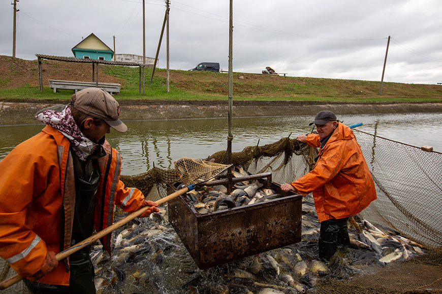 -Специфика рыбоводческой отрасли в том, что у нас нет ни комбинатов, ни централизованной обработки. В отличие, к примеру, от животноводства, где есть возможность реализовать продукцию заводу-переработчику. Наши рыбхозы не только самостоятельно получают молодь, обеспечивают кормление рыбы и выращивают ее, облавливают пруды, производят сортировку, обеспечивают зимовку, а еще и перерабатывают и продают,-поясняет заместитель генерального директора ГО “Белводхоз” Денис Заяц.