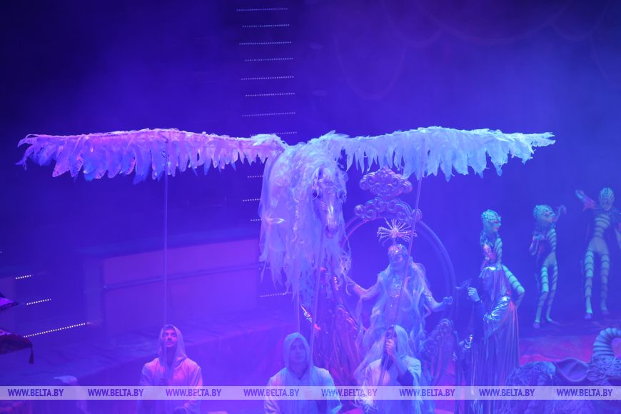“Это совместный проект Казанского госцирка, Белгосцирка, Московского цирка Никулина на Цветном бульваре и Якутского цирка. Все участники будут равномерно представлены, наших номеров в программе около 40%. Здесь все, что связано с воздухом, конный аттракцион, есть балет, дрессированные медведи, овечки – всего 21 номер, все легкие, изящные, свето-звукооформленные. Просто фантастическая работа пара со светом. Слово “шоу” для цирка не совсем характерно, но здесь будет переплетаться цирковое искусство и шоу”, – рассказал Владимир Шабан.
