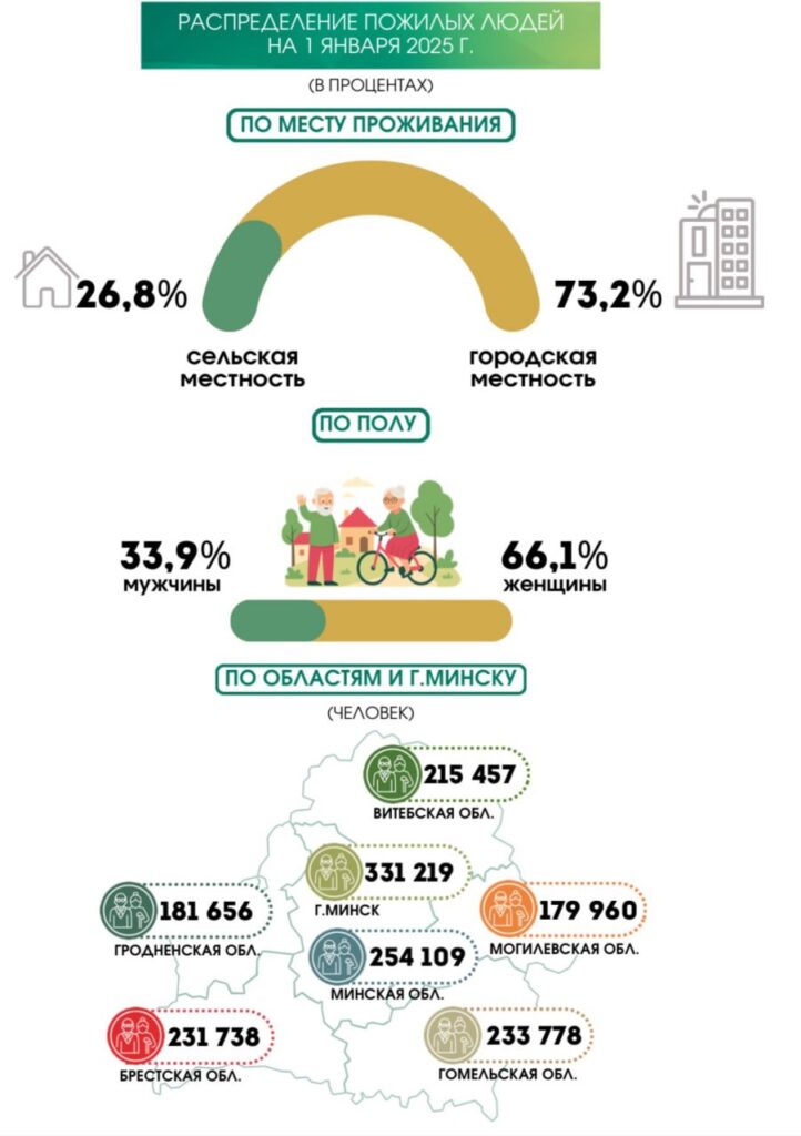 ✅1 627 918 пожилых граждан возрасте 65+ проживало на 01.01.2025 в Беларуси