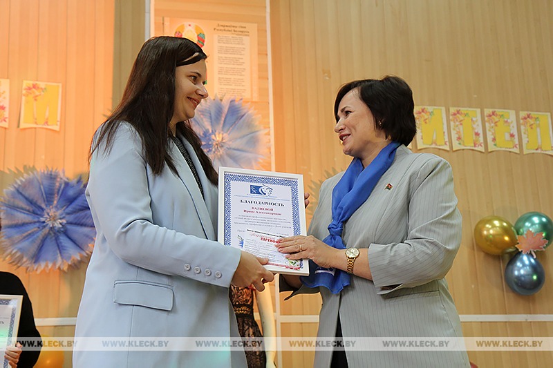 Не с пустыми руками приехала на торжество и председатель районного Совета депутатов Наталья Суховей, возглавляющая районную организацию общественного объединения «Белорусский союз женщин». Наталья Михайловна пожелала всем новых творческих достижений и благодарных учеников, поблагодарив при этом коллектив сельхозколледжа за неравнодушие и преданность своему делу. Активистки «БСЖ» были удостоены благодарности от районной организации.