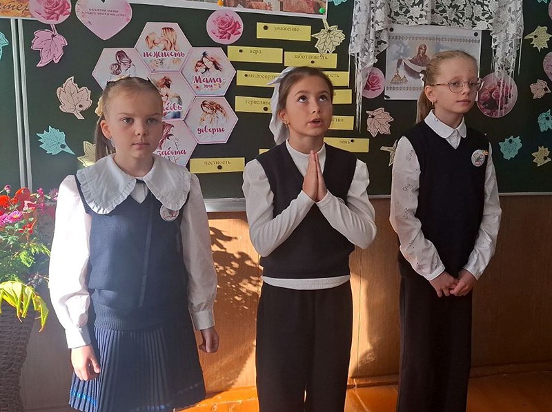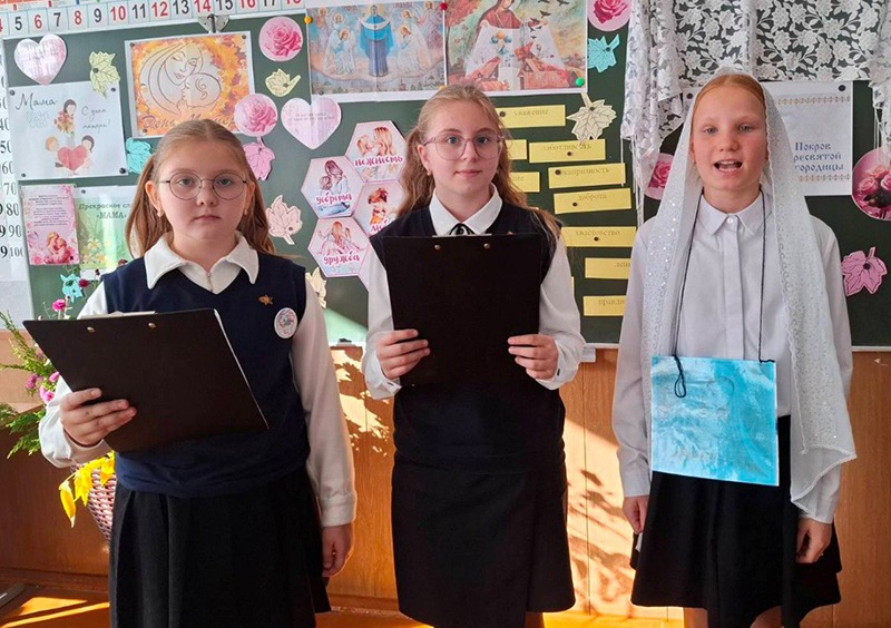 Ребята поделились своими знаниями о светлом празднике Покрова Пресвятой Богородицы, с воодушевлением рассказали о Дне Матери, прочитали стихи, исполнили песни и подготовленные ими инсценировки.