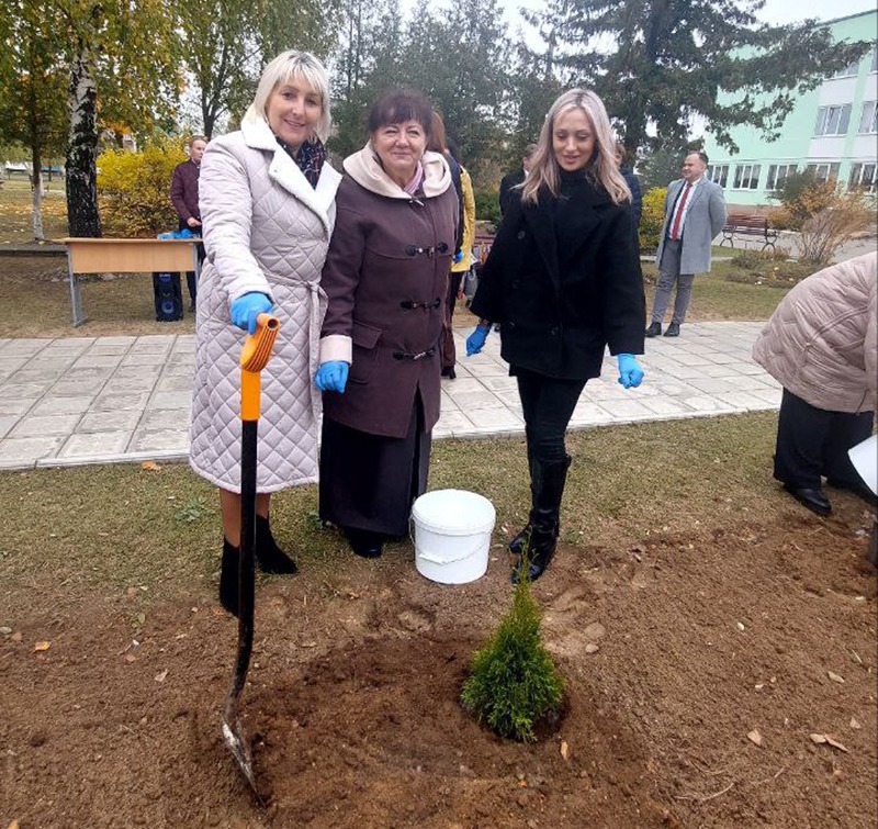 Затем гости посетили Клецкую СШ №3. Красиво их приветствовали ребята. Среди школьников были также члены военно-патриотического клуба «Патриот» и юные инспектора дорожного движения «Зебрята». В этот же день на территории школы заложена новая аллея из туй, которую участники мероприятия и руководство учебного заведения посвятили 35-летию образования Федерации профсоюзов Беларуси.
