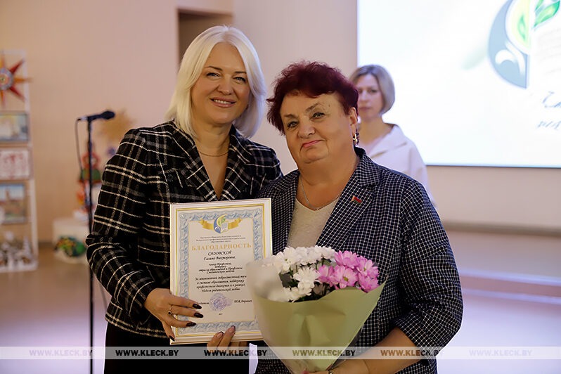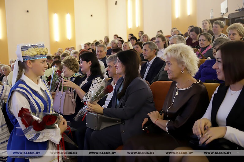 – Очень ценно, что здесь присутствуют гости из соседних районов, – говорила Алла Николаевна. – Клецкая земля всегда славилась своим гостеприимством. Сегодня я хочу сказать слова благодарности Минской областной организации Белорусского профсоюза работников образования и науки и лично Татьяне Валентиновне Апранич за то, что площадкой для проведения такого мероприятия был выбран наш район. Уверена, что-то новое вы уже для себя почерпнули, посетив наши школы. Мы гордимся тем, что у нас уже сделано в системе образования. Хочу выразить большую благодарность педагогам-ветеранам, заложившим прочные традиции, которые сейчас поддерживаются и преумножаются. Сегодня в зале присутствуют педагоги разных поколений, и это замечательно, потому что в нашем государстве уделяется большое внимание преемственности поколений. Прекрасное выбрано время для этой встречи, когда проходит Неделя родительской любви. Семья – это основа основ, и именно вам, дорогие учителя, мы отдаем самое ценное – наших детей. Хочу поблагодарить вас за ваш труд, а ветеранов – за неугомонность, которая проявляется в работе нашей ветеранской организации, возглавляемой Еленой Александровной Новик: с вами работать легко и интересно, вы – наша опора во многих делах.