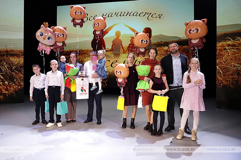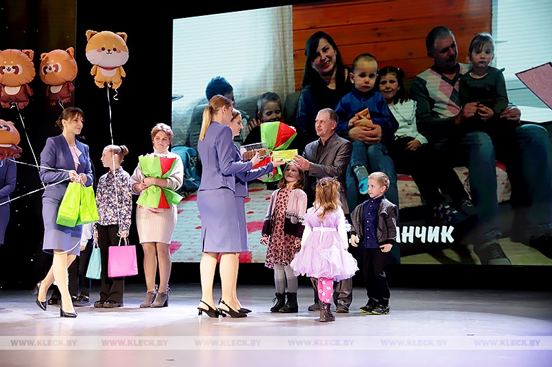 Сегодня во время праздничного концерта презент передан семьям наших землячек – Елены Анатольевны Гайдукевич и Елены Дмитриевны Савчанчик, которые в этом году удостоены почетной награды – символа высокого признания материнства в нашей стране, глубокого уважения и почитания роли женщины в белорусском обществе – Ордена Матери.