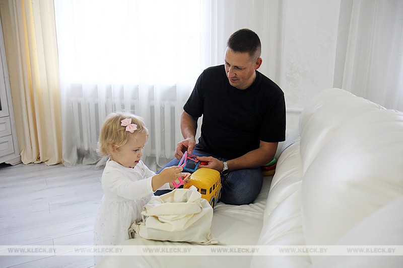 Александр Ващило стал «декретным папой» не сразу. Первые полгода с дочкой Евой провела мама. Затем пара приняла решение: глава семьи берет заботу о малышке в свои руки, а супруга Анна возвращается на работу в Клецкую ЦРБ.
