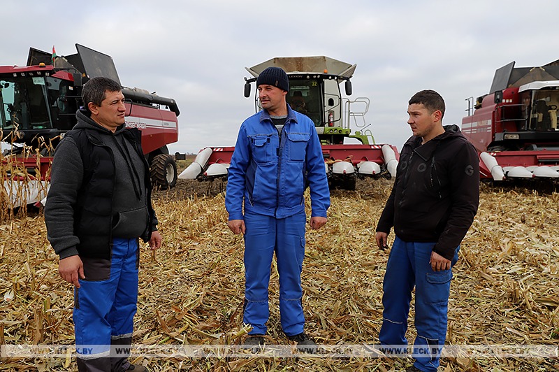 В прошлом году хозяйство закупило сразу три специализированные жатки «КОК-8» отечественного производства для уборки кукурузы на зерно. Ее используют в тандеме с комбайнами, которые летом работали на хлебных нивах. Агрегатируется она с машинами разных моделей благодаря съемной переходной рамке. Так, например, с новым оборудованием этой осенью результативно работает Сергей Костюкевич на белорусском «GS2124» и Сергей Янучок на немецком «Lexion 770».