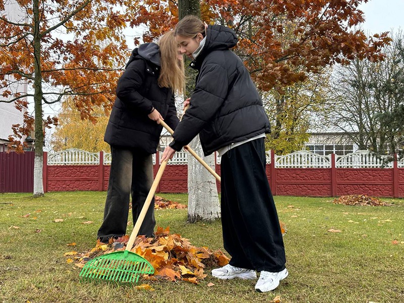 К акции подключились учащиеся средней школы №1 города Клецка. Вместе с преподавателями ребята навели порядок в городском парке — собирали листья, подметали дорожки и делали территорию чище и уютнее.