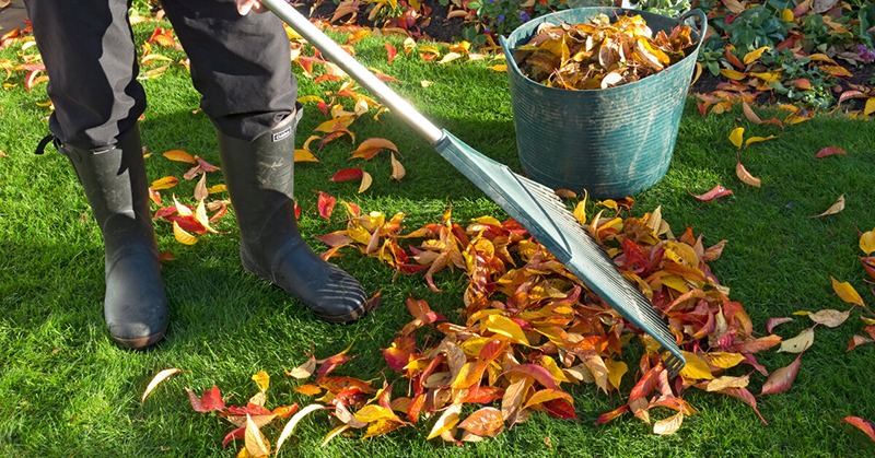 • Чистим газон от листвы