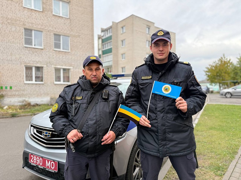 На маршруте патрулирования были поздравлены филины, стоящие на страже безопасности города – сотрудники группы задержания милиционер-кинолог ГЗ старший прапорщик милиции Максим Богданович и милиционер-водитель ГЗ сержант милиции Максим Балецкий.