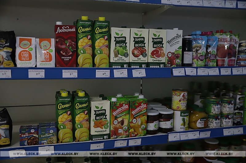 Среди разнообразия безалкогольных напитков свою нишу заняли и новинки газировок Клецкого ППЗ. Однако «выкладка» продуктов в бутылках здесь весьма непонятная: безалкогольные чередуются с пивом и квасом. Бакалея представлена в ассортименте. Куриная заморозка – «Дружбовская». Молочка на 80% состоит из товаров ОАО «Слуцкий сыродельный комбинат», частичные позиции – от «Савушкина». Преимущество хлебобулочным изделиям отдано Клецкому ППЗ и Солигорскому заводу. Витрина с колбасными изделиями не изобиловала, но сотрудники магазина уверяли, что ждут привоза. Сюда поступают колбасы из Слуцка, Березы, Слонима и Клецкого коопзаготпрома.