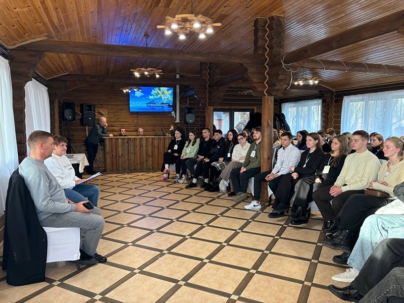 Встреча “без галстуков” с председателем Клецкого РИК Юрием Карловичем проходит на базе отдыха “Жужаль”. Ребята могут напрямую задать все волнующие их вопросы по вопросам работы, жилья и развития города.