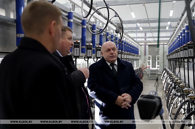 Сегодня у нас начинается финишная прямая по сдаче объектов в Минской области, приуроченная к государственному празднику 7 ноября. В ближайшие дни на 25 объектах самого разного назначения будут перерезаны красные ленточки. Один из самых крупных – молочно-товарный комплекс в Клецком районе, который представлен двумя помещениями для содержания дойного поголовья, новым молочно-доильным блоком с самым современным доильным оборудованием. Реализация этого проекта стала возможной благодаря поддержке областного бюджета, займа молочного завода и личной поддержке председателя Миноблисполкома Алексея Ивановича Кушнаренко, – сказал Василий Васильевич.