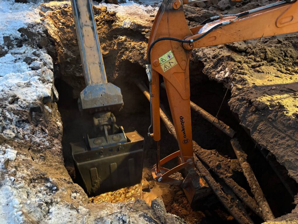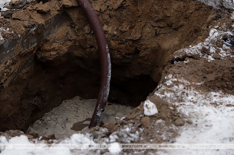 18.20. Порядка четырех метров разрыт котлован на улице Победы в Клецке, а до трубопровода еще не добрались. Экскаватор работает без остановок, воду периодически откатывает машина, аварийная бригада в ожидании. Как только будет установлена точка порыва, начнется восстановление трубы.