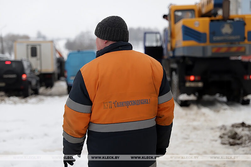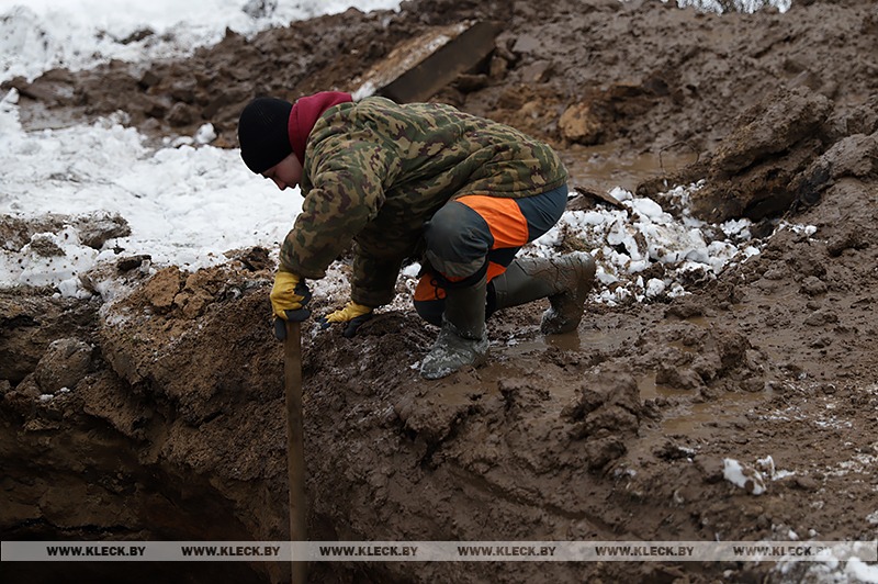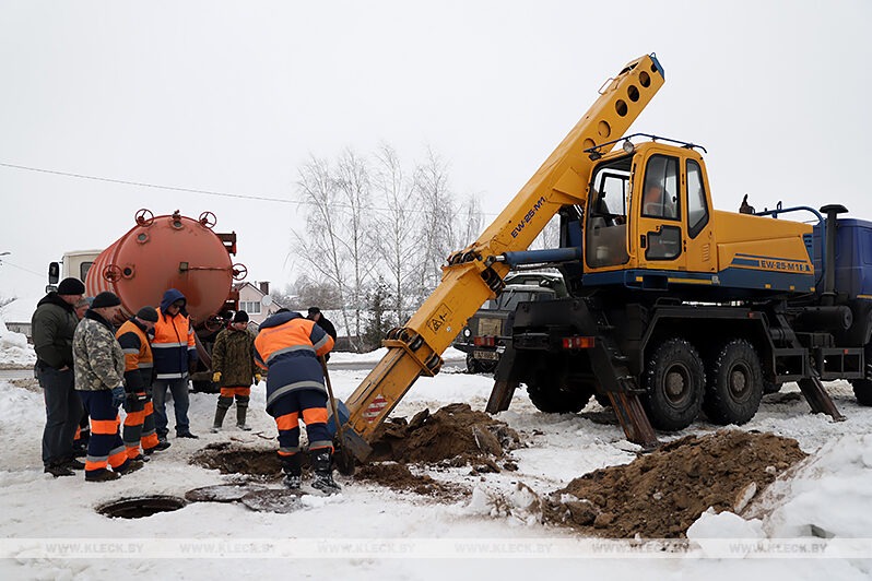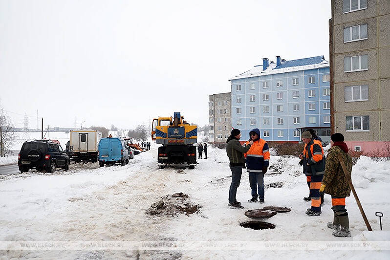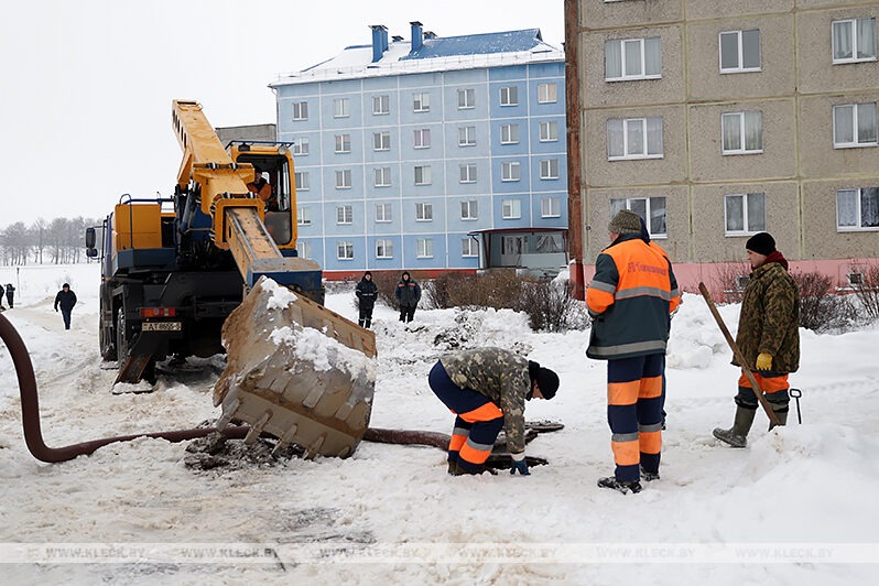 Аварийная бригада в эти минуты ищет конкретную точку, где произошел прорыв трубы по ул.Победы в Клецке. Как только она будет установлена, подача воды в город прекратится до устранения аварии.