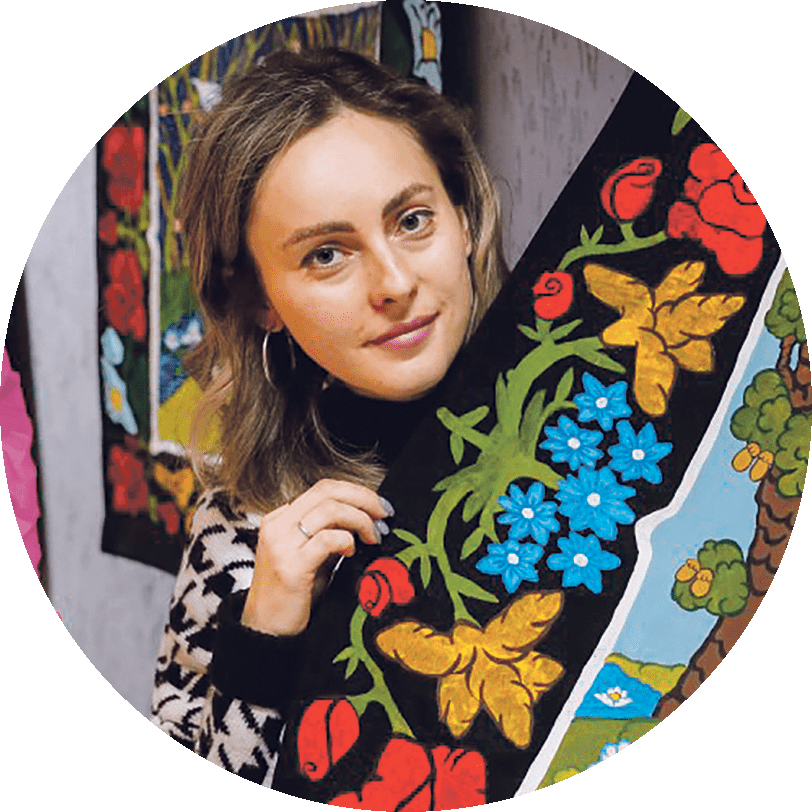Эта талантливая горожанка известна своими рисованными коврами, росписью по стеклу, работами в жанре «вытинанка», коллекциями дизайнерских аксессуаров и пасхальных яиц, а также проектами по возрождению традиционных обрядов и костюмов Клецкого района.