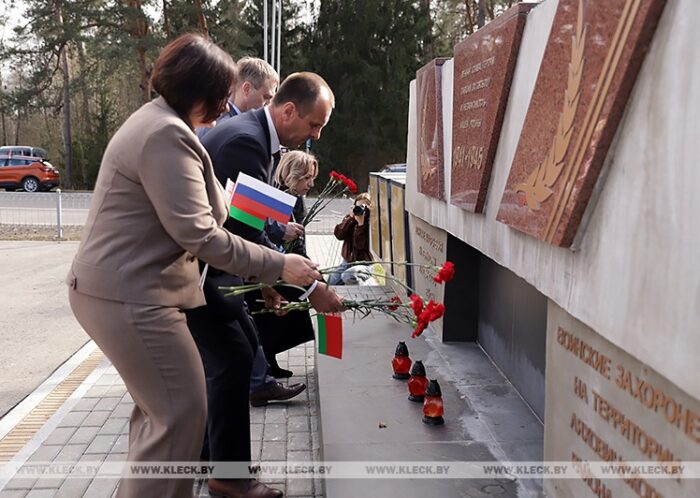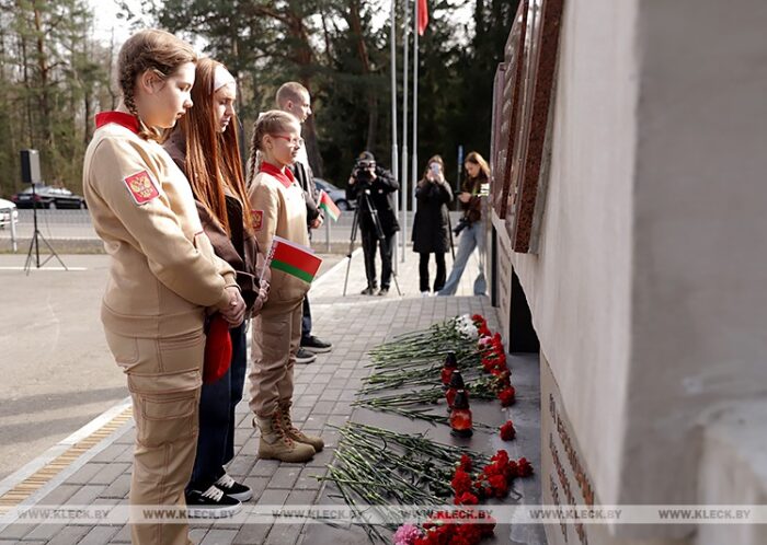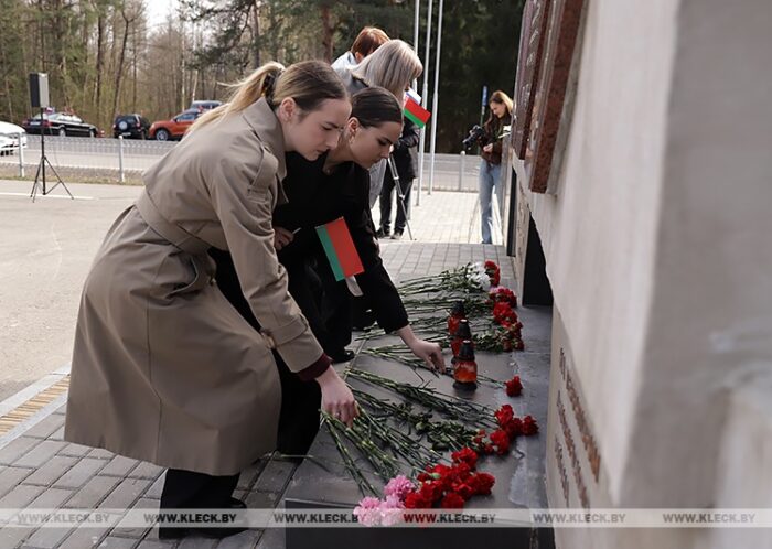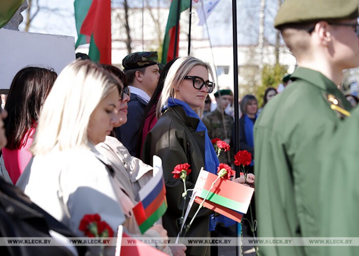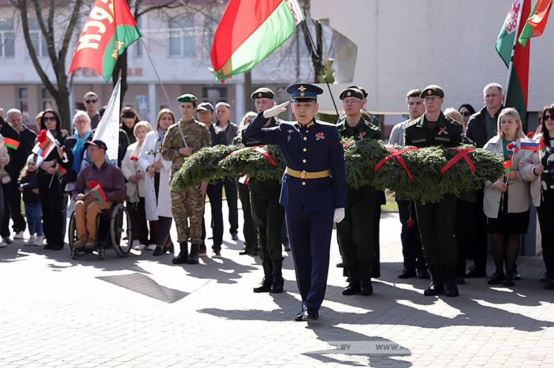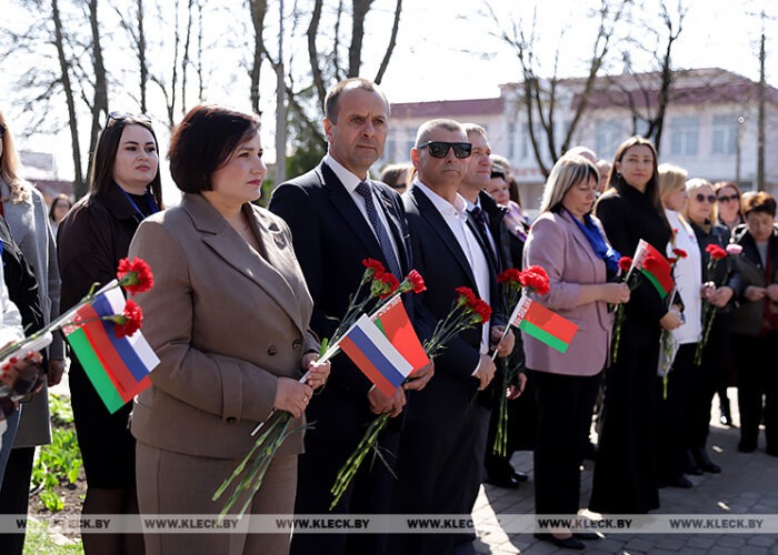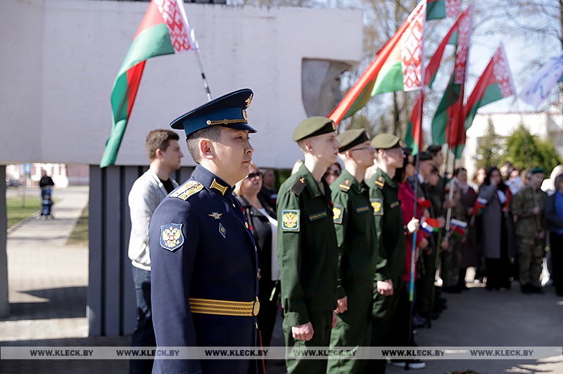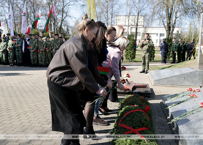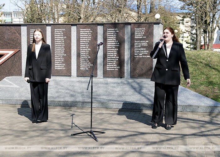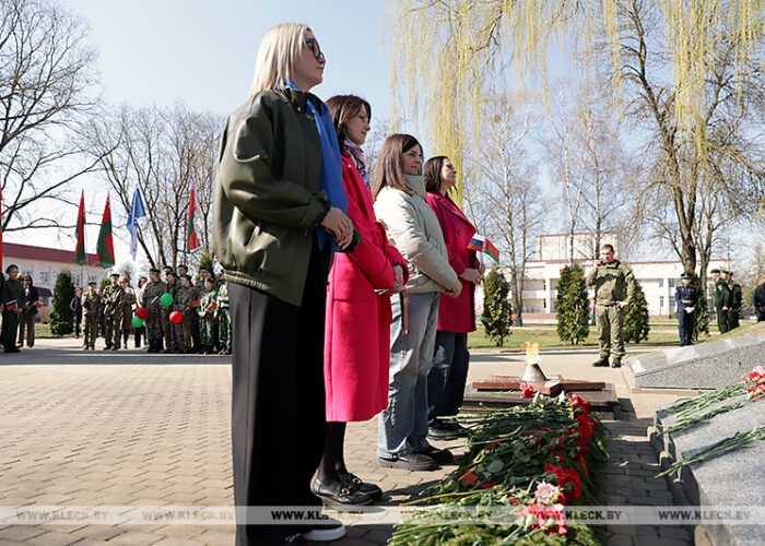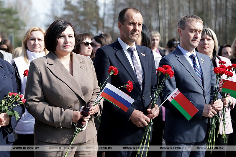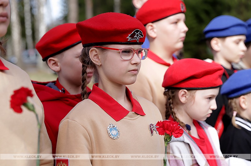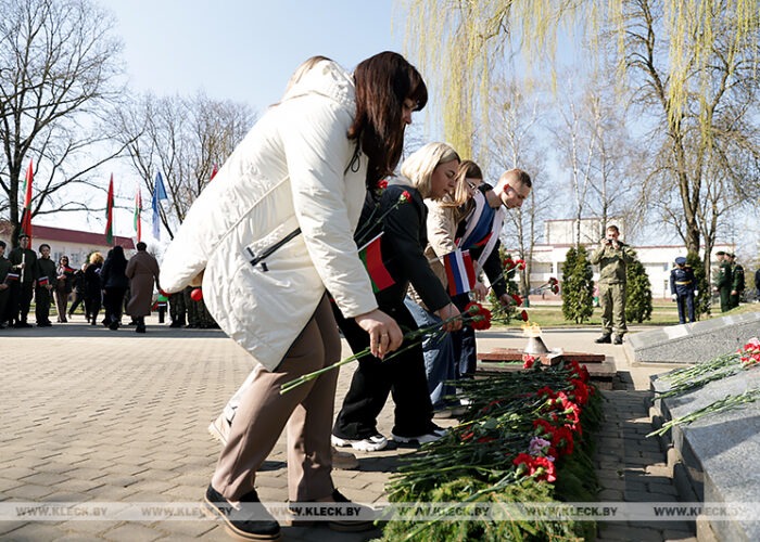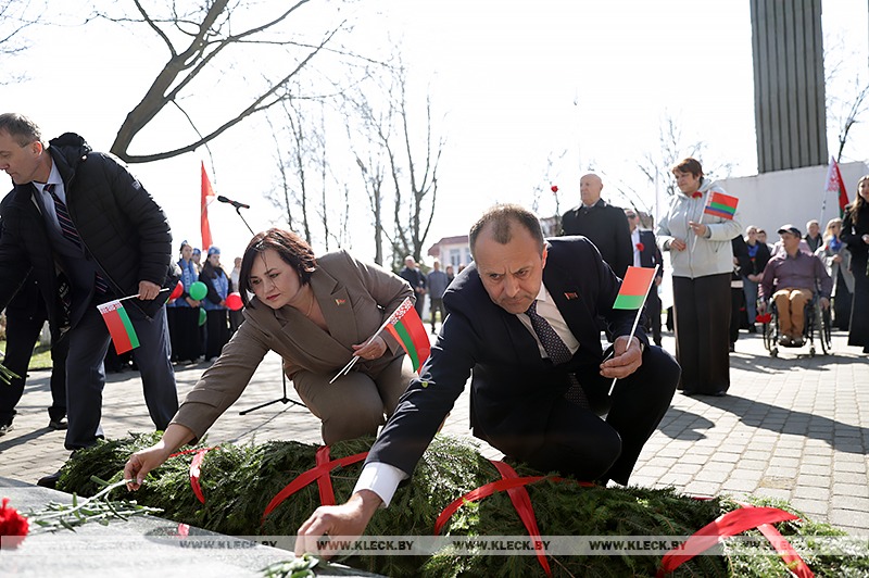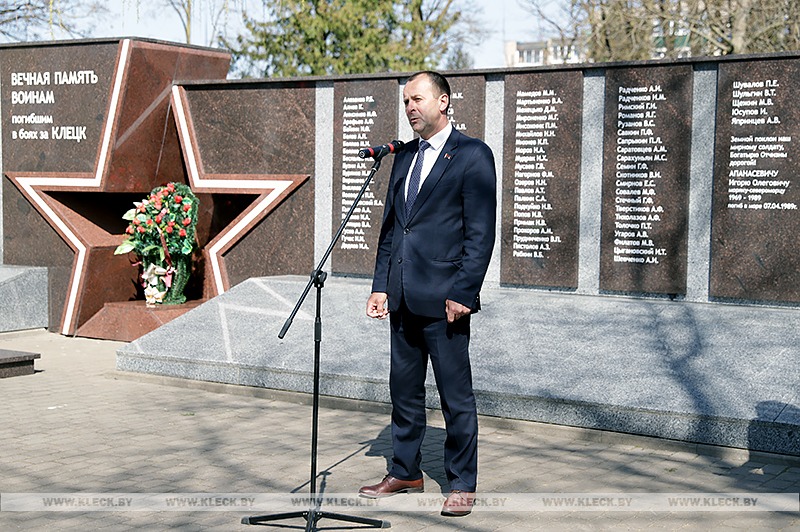Потомки победителей почтили героев Великой Отечественной войны минутой молчания и возложили живые цветы к воинскому мемориалу в Клецке.