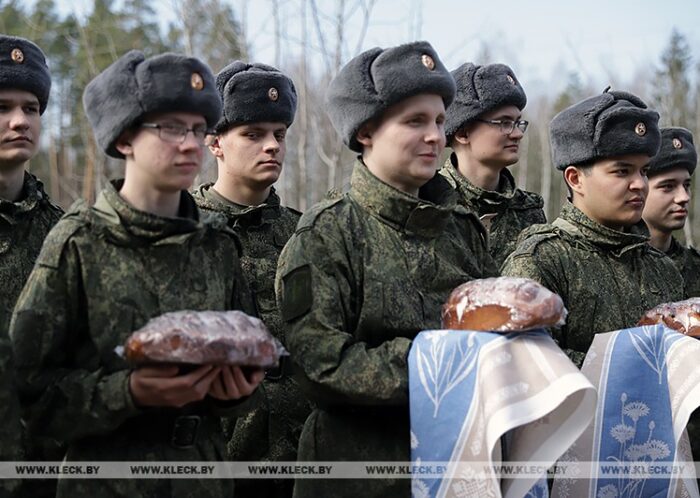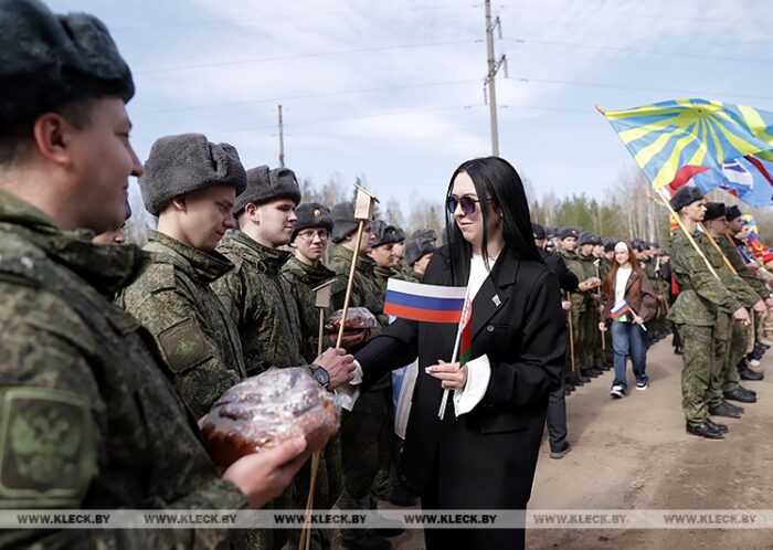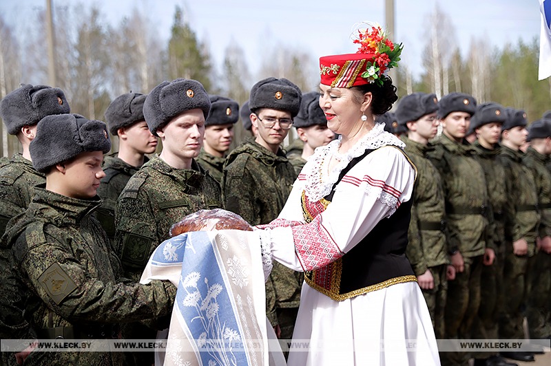От имени белорусских женщин солдаты получили каравай, как знак хлебосольного отношения белорусов к представителям соседней страны.