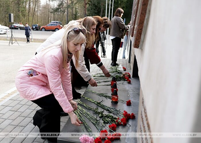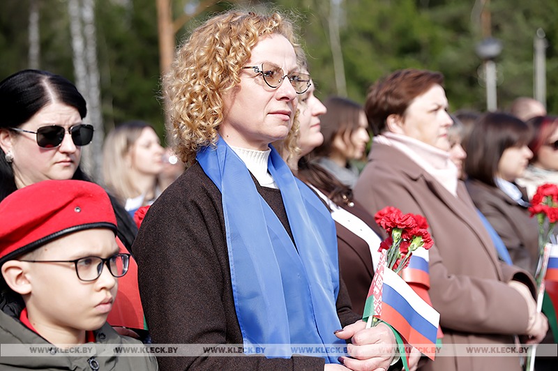 И здесь легли живые цветы у подножия мемориала. Наступил трогательный момент, когда нынешние поколения белорусов с печалью и благодарностью в душе отдали дань памяти героям.