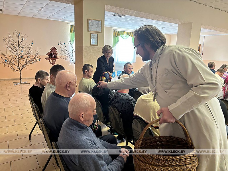 В Клецком районе есть добрая традиция, когда в светлые пасхальные дни, наполненные добром, душевным теплом и радостью, представители местной власти совместно со священнослужителями и общественниками угощают жителей социальных учреждений района куличами.
