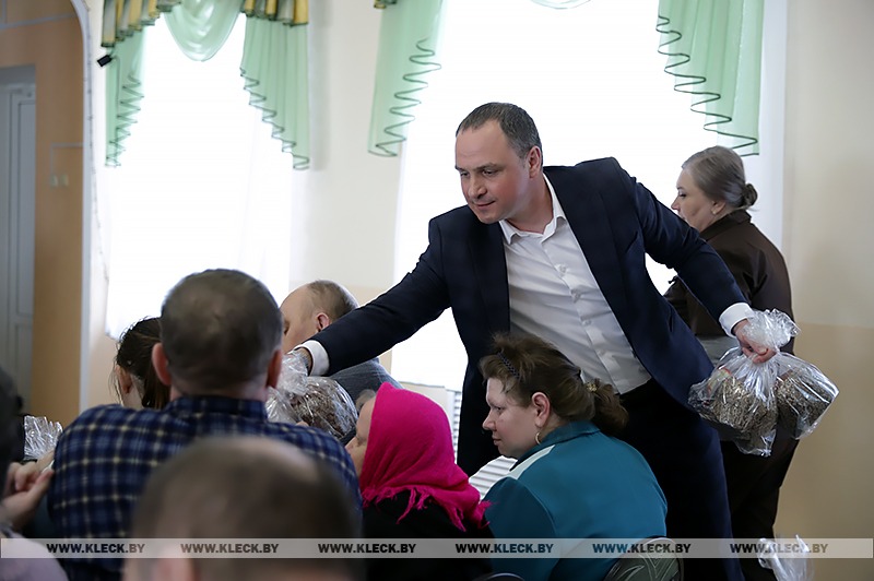 Заместитель директора предприятия Александр Хомич навестил постояльцев социального пансионата в Домоткановичах «Озерный уголок» , чтобы порадовать их в эти светлые праздничные дни и словом. И делом: