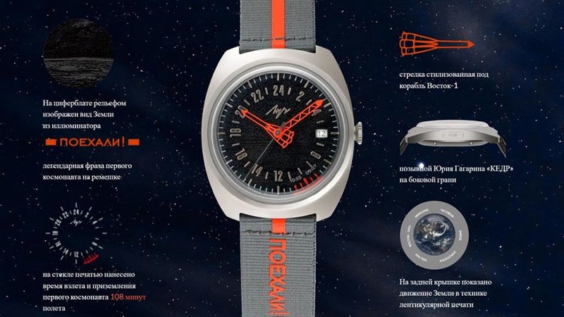 12 апреля 1961 года летчик-космонавт СССР Юрий Алексеевич Гагарин совершил первый в истории человечества полет в космос. Именно этим 108 минутам посвящена новая коллекция бренда «Луч». Каждая деталь часов отсылает к легендарному событию: от механизма до гравировки, ремешка и формы стрелок.