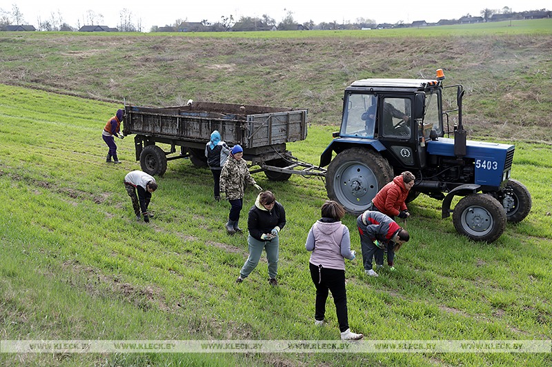 Коллективы сельхозорганизаций Клецкого района работают на фермах и машинно-тракторных парках. Сельчане и волонтеры из трудовых коллективов города также трудятся на очистке полей от камней.