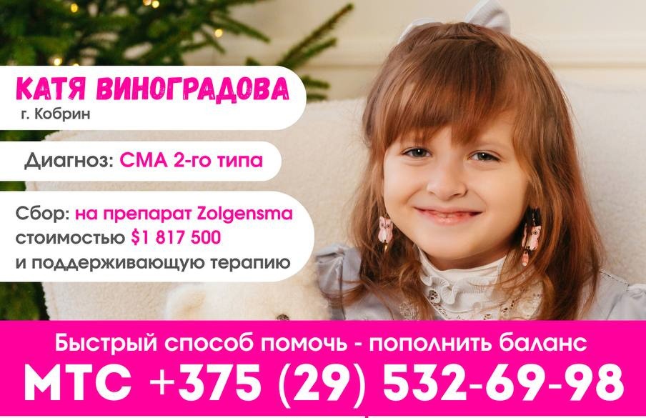 У Кати Виноградовой из Кобрина – спинальная мышечная атрофия второго типа. Болезнь не щадит ребенка.…